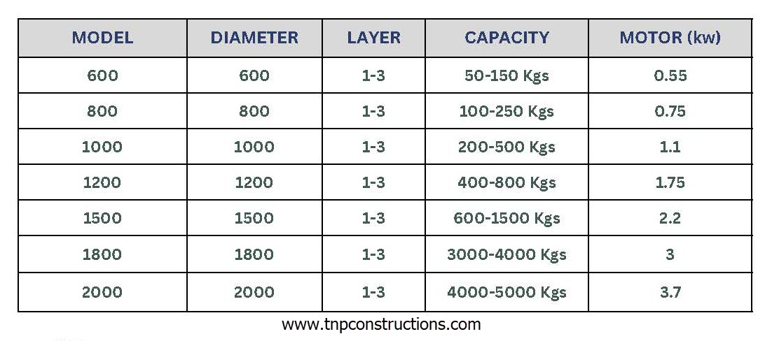 เครื่องร่อนมีหลายขนาดตั้งแต่ 8”, 18”, 24”, 30”, 40”, 48”, 60” และ 72” และผลิตตามแบบที่ต้องการ